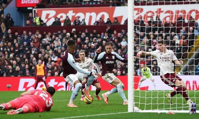 第36分钟,保·托雷斯左侧斜传禁区,前点廷伯蹭了一下,阿森纳整条后防线未能及时解围,皮球来到后点!维拉后卫卡什插上凌空抽射!皮球竟然打穿了门将拉亚的裆下飞入网窝,维拉1-0领先阿森纳。
